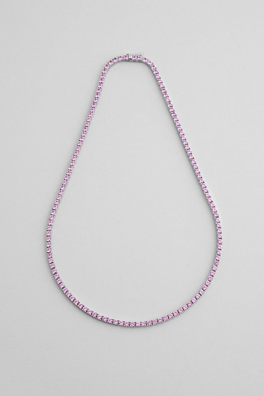 Pembe Taşlı 18 Ayar Beyaz Altın Kaplama 42 Cm Gümüş Su Yolu Kolye 5154130399