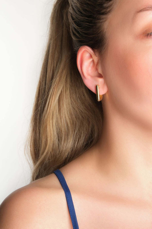 Minimal 18 Ayar Sarı Altın Kaplama Gümüş Küpe 5172270144