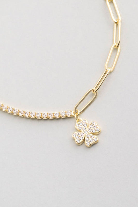 Şans Yonca 18 Ayar Sarı Altın Altın Kaplama 19 Cm Gümüş Su Yolu Bileklik 5167170144