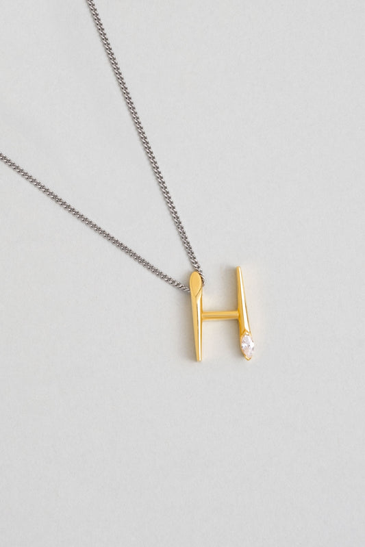Asimetrik H Harfi 18 Ayar Beyaz Ve Sarı Altın Kaplama 45 Cm Gümüş Harfli Kolye 07302080144