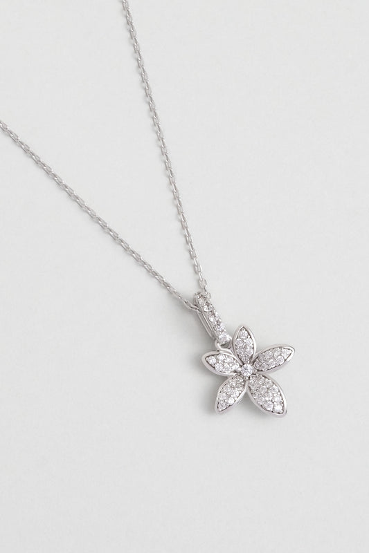 Işıltılı Çiçek 18 Ayar Beyaz Altın Kaplama 45 Cm Gümüş Kolye 5164930199