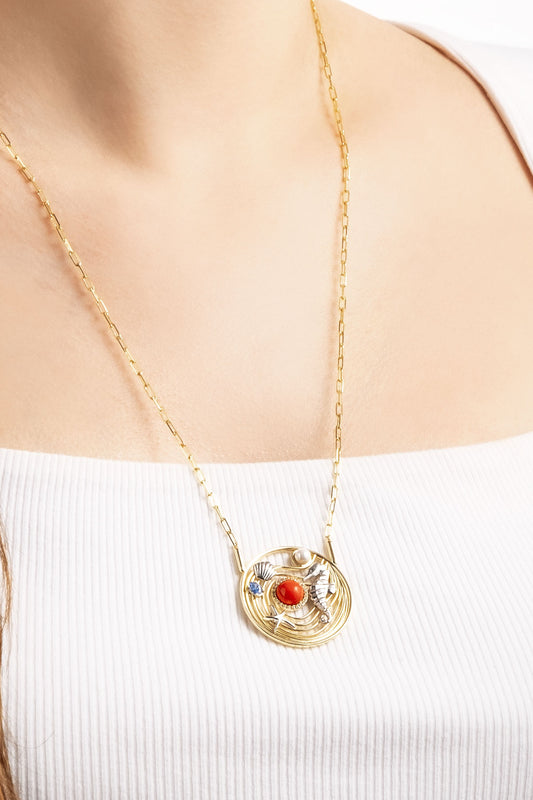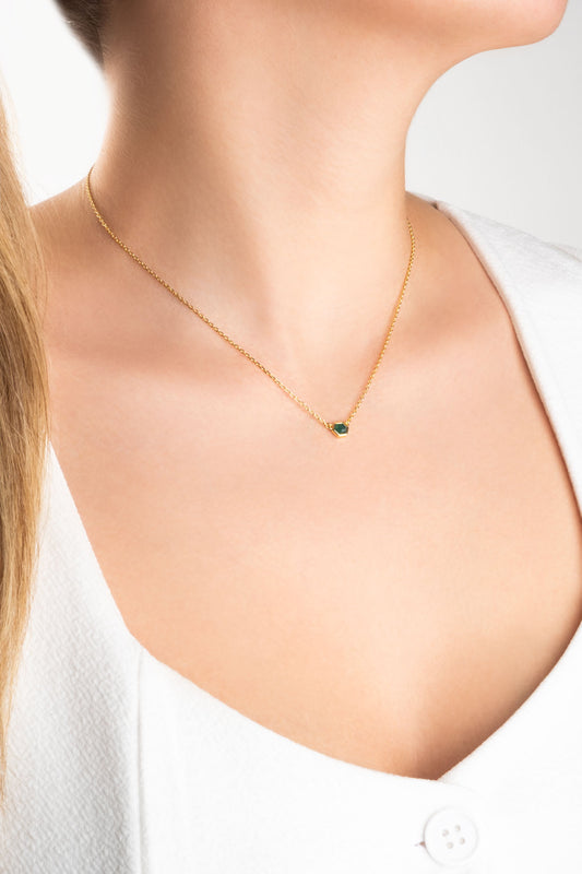 Kalsedon Masalı 18 Ayar Sarı Altın Kaplama 45 Cm Gümüş Kolye 07303250444