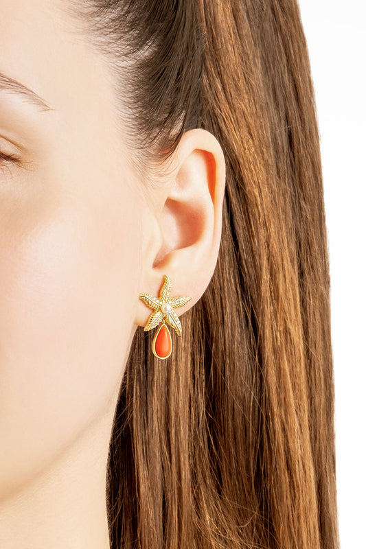 Mercan Yıldızı 18 Ayar Sarı Altın Kaplama Gümüş Küpe 07311160844