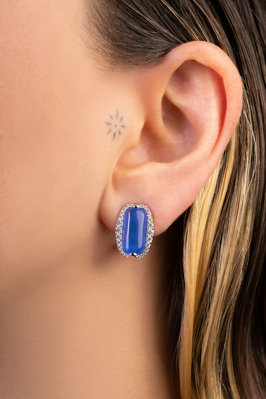 Safir Gecesi 18 Ayar Beyaz Altın Kaplama Gümüş Küpe 07297030599