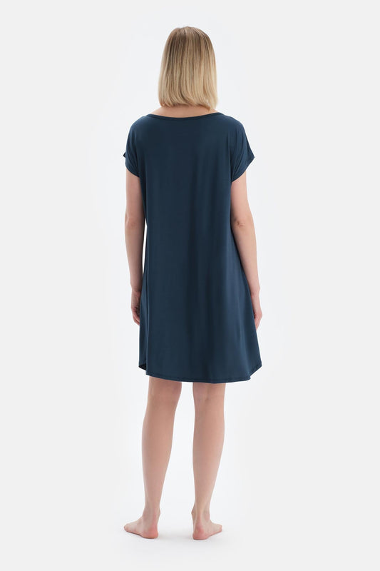 Indigo Bisiklet Yaka Kısa Kollu Gecelik