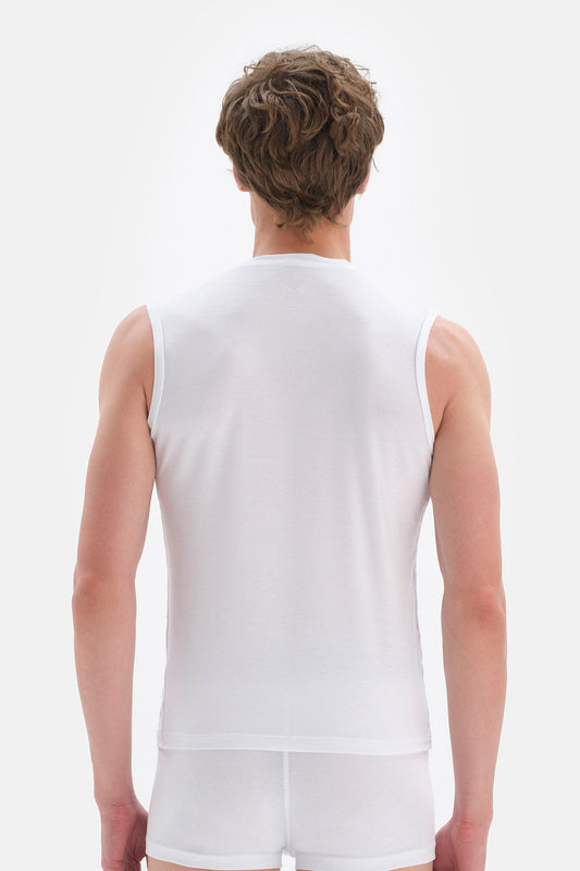 Beyaz Micro Modal V Yaka Erkek Kolsuz Fanila