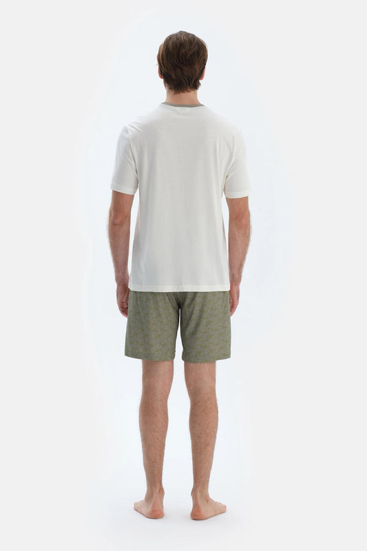 Ekru Kısa Kollu Tişört Şort Pijama Takımı