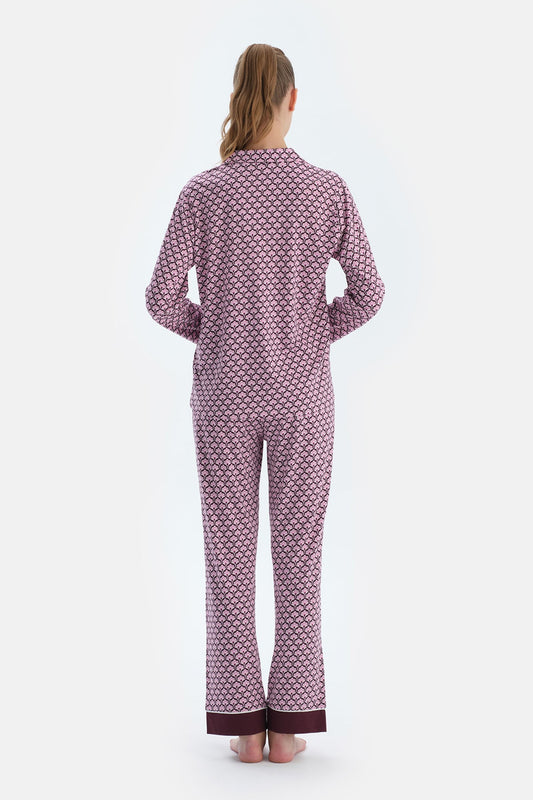 Multicolor Geometrik Metraj Baskılı Penye Modal Gömlek Pantolon Pijama