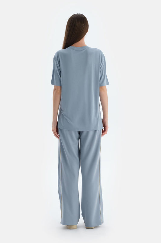 Açık Mavi Kadın Modal Yırtmaç Detaylı Tişört