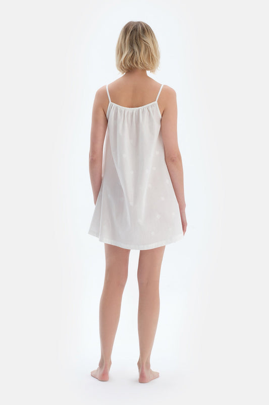 Beyaz Askılı Poplin Dokuma Hamile Gecelik