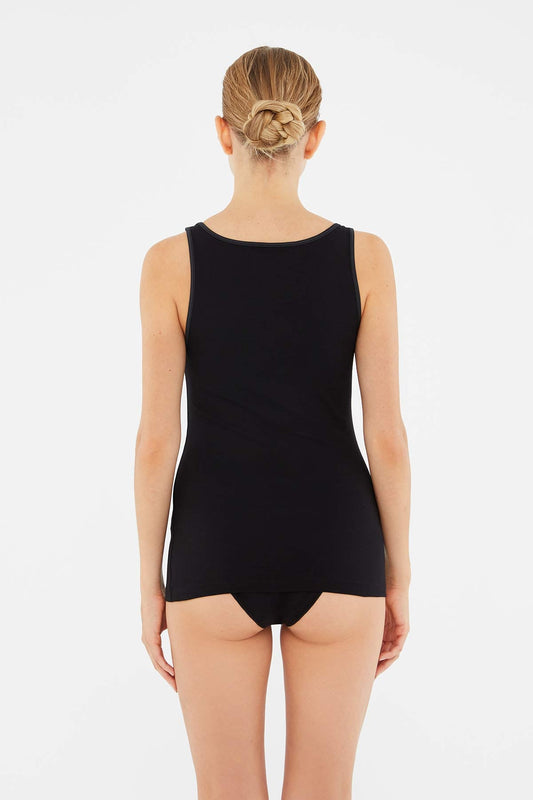 Siyah Geniş Yaka Kalın Askılı Penye Kadın Atlet