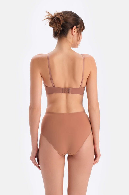 Kahverengi Plumeria Straplez Yarı Dolgulu Sütyen