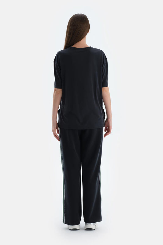Siyah Kadın Modal Yırtmaç Detaylı Tişört