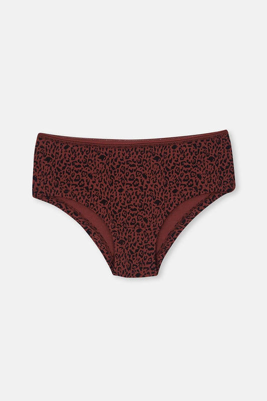 Kızıl Kahve-koyu Bej Kadın 3'lü Desenli Hıpster Külot