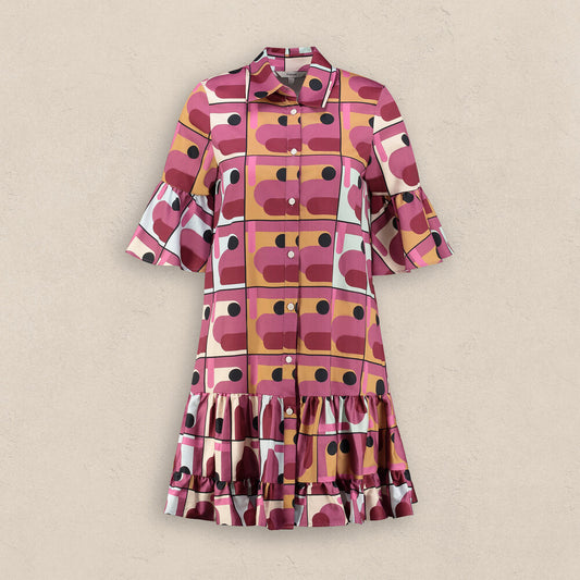 TükendiFiorella Desenli Pembe Elbise