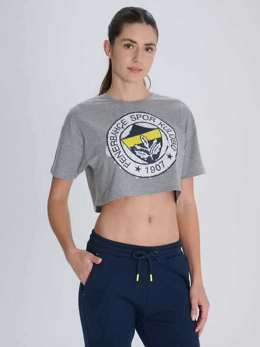 Fenerbahçe Gri Melanj Tribün Fırça Detaylı Kadın Tshirt
