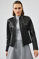 Takeoff Erkek Siyah Armalı Deri Ceket