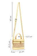 Kadın Sarı Uzun Askılı Desenli Mini Kutu Çapraz Çanta