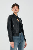 Bella Kadın Siyah Slim-fit Biker Deri Ceket