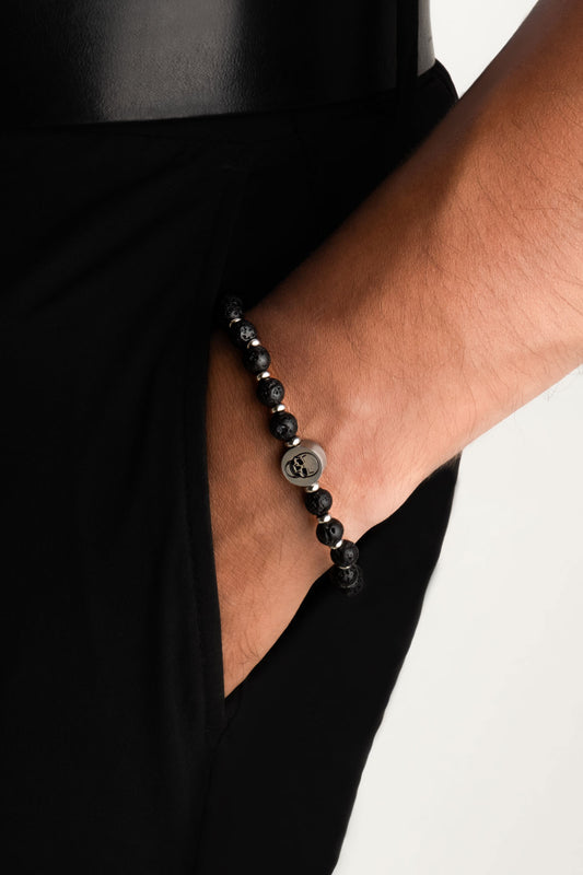 Lav Taşlı Kurukafa Figürlü Çelik Erkek Bileklik 02434270220