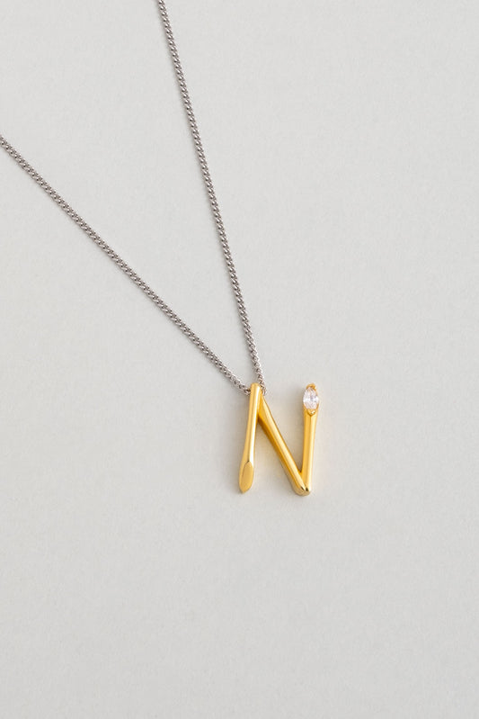 Asimetrik N Harfi 18 Ayar Beyaz Ve Sarı Altın Kaplama 45 Cm Gümüş Harfli Kolye 07302150144