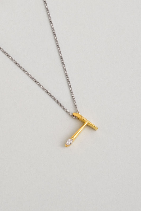Asimetrik T Harfi 18 Ayar Beyaz Ve Sarı Altın Kaplama 45 Cm Gümüş Harfli Kolye 07302220144