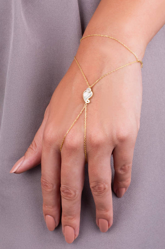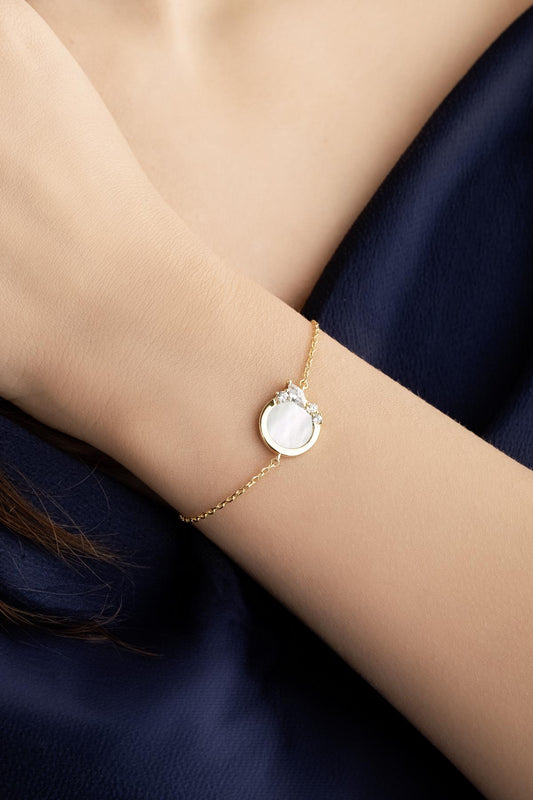 Sedef Taşlı 18 Ayar Sarı Altın Kaplama 19 Cm Gümüş Minimal Bileklik 07299514644
