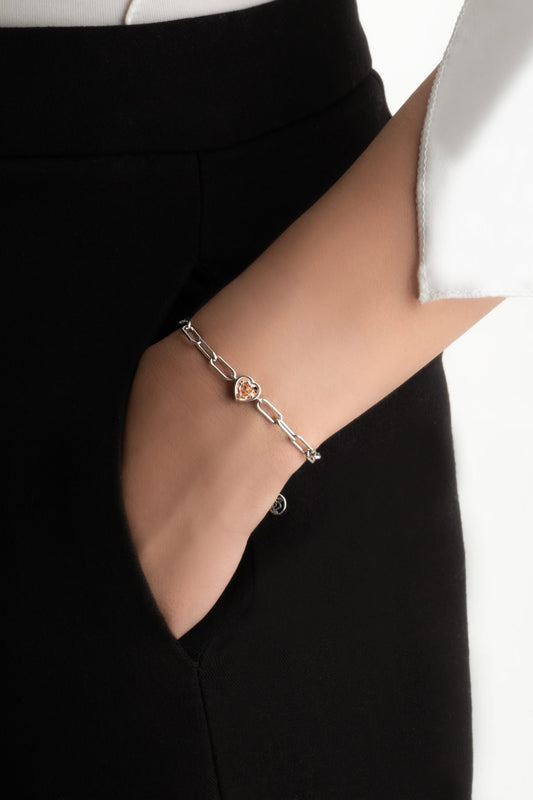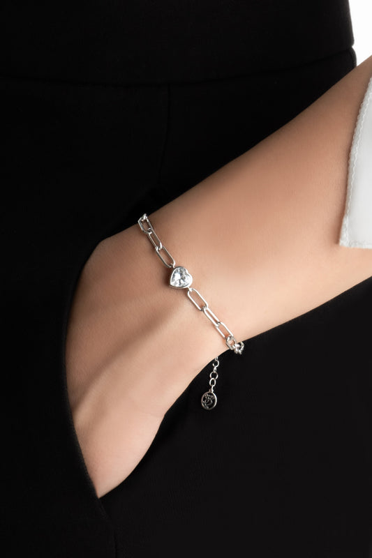 Gizemli Kalp 18 Ayar Beyaz Altın Kaplama 20 Cm Gümüş Bileklik 07309070199