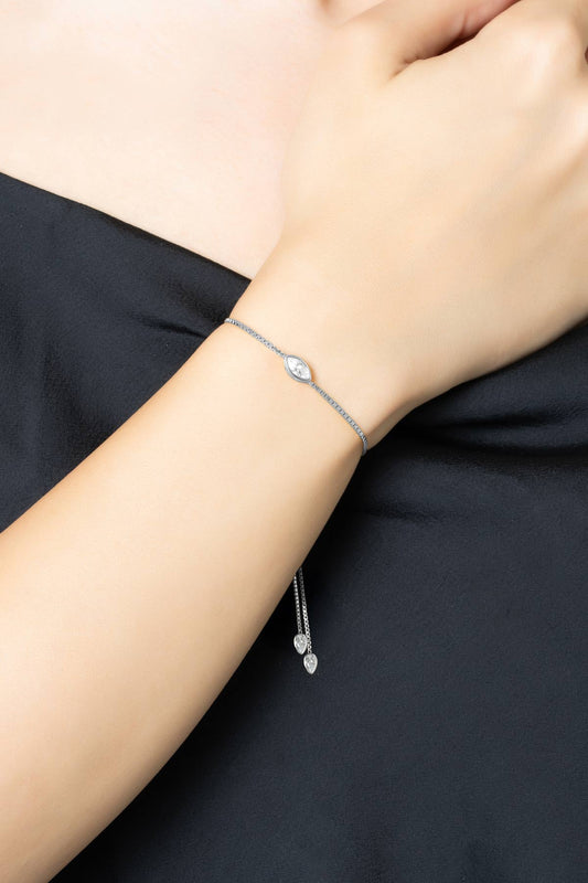 Vera 18 Ayar Beyaz Altın Kaplama Ayarlanabilir Gümüş Bileklik 5203360199