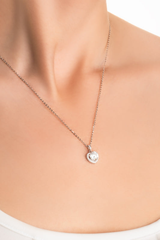 Mozanit Kalbi 18 Ayar Beyaz Altın Kaplama 46 Cm Gümüş Kolye 5212230199