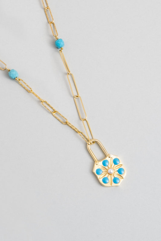 Mistik Turkuaz 18 Ayar Sarı Altın Kaplama 53 Cm Gümüş Kolye 07293471644