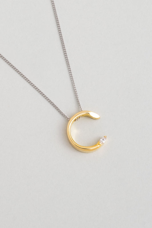 Asimetrik C Harfi 18 Ayar Beyaz Ve Sarı Altın Kaplama 45 Cm Gümüş Harfli Kolye 07302020144