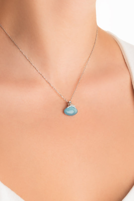 Kalsedon Kalbi 18 Ayar Beyaz Altın Kaplama 42 Cm Gümüş Kolye 07314090599