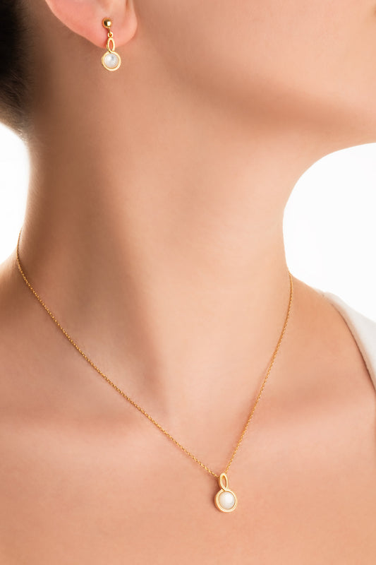 Sedef Işıltısı 18 Ayar Sarı Altın Kaplama 42 Cm Gümüş Kolye 07314364644