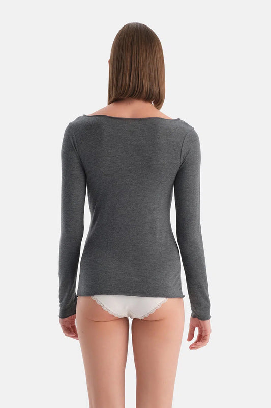 Antrasit Melanj Modal Kaşmir Kayık Yaka Uzun Kollu Üst
