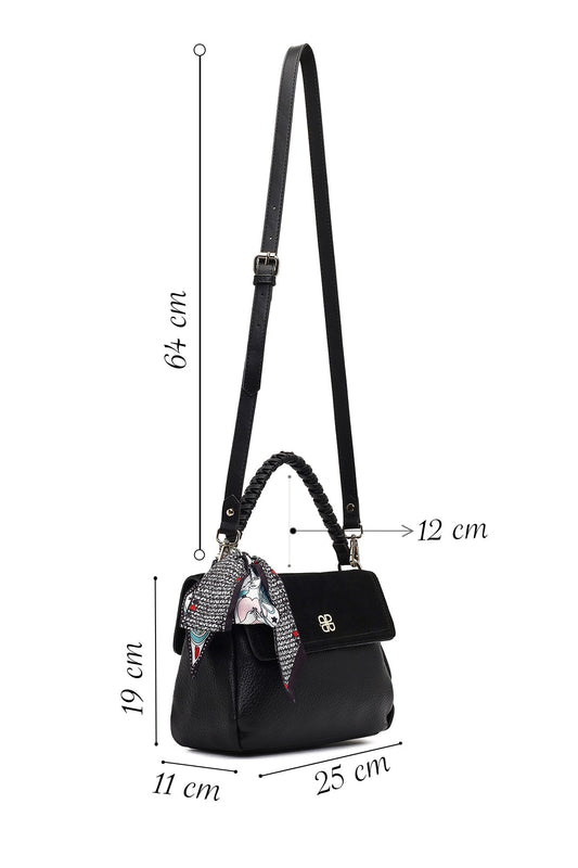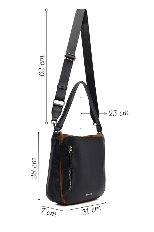 Kadın Siyah Uzun Askılı Süet Deri Omuz Çantası