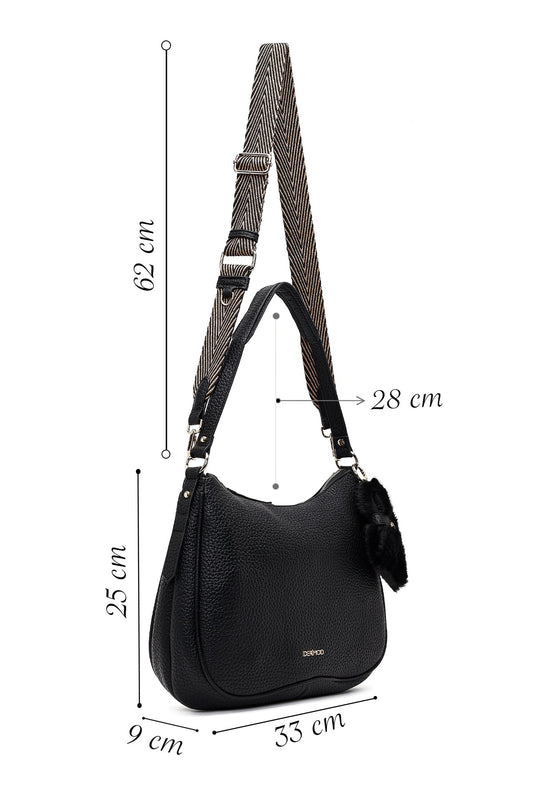 Kadın Siyah Aksesuarlı Klasik Omuz Çantası