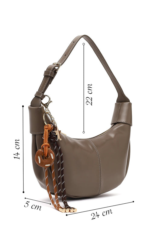 Kadın Gri Uzun Askılı Aksesuarlı Örgü Omuz Çantası
