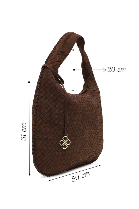 Kadın Kahverengi Örgülü Süet Omuz Çantası
