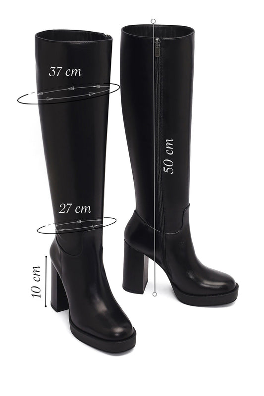 Kadın Siyah Fermuarlı Yüksek Topuklu Deri Çizme