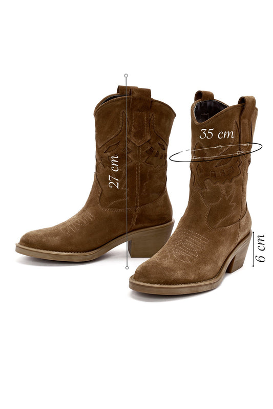 Kadın Kahverengi Kısa Kalın Topuklu Süet Deri Kovboy Bot