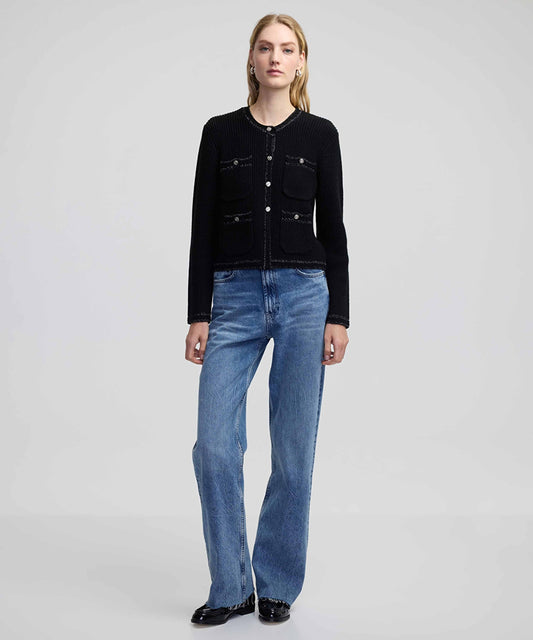 Alsua Bisiklet Yaka Simli Siyah Triko