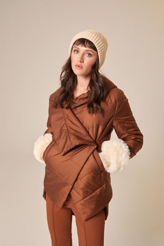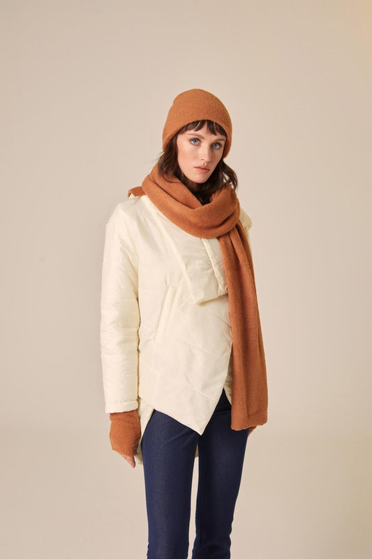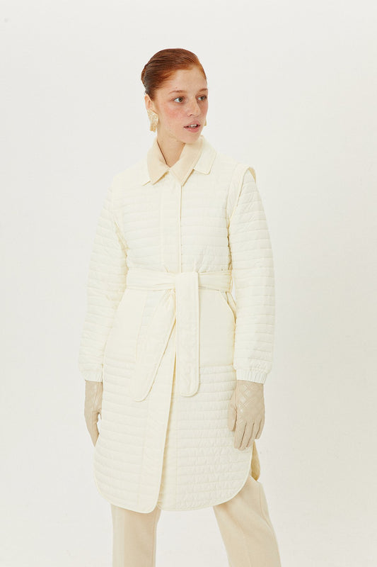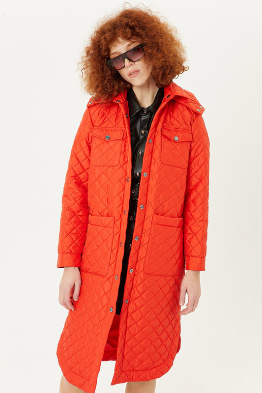 Mercan Kapüşonlu Kapitone Uzun Mont