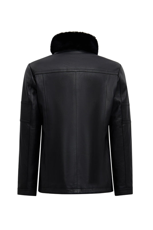 Diana Kadın Siyah Yaka Kürklü Oversize Deri Mont