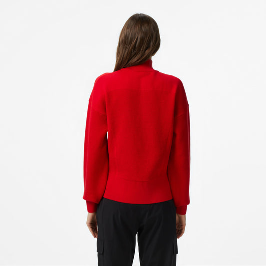 Lacoste Kadın Relaxed Fit Yarım Fermuarlı Kırmızı Kazak