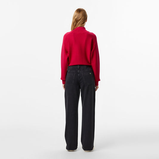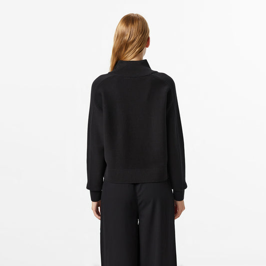 Lacoste Kadın Classic Fit Yarım Fermuarlı Siyah Kazak