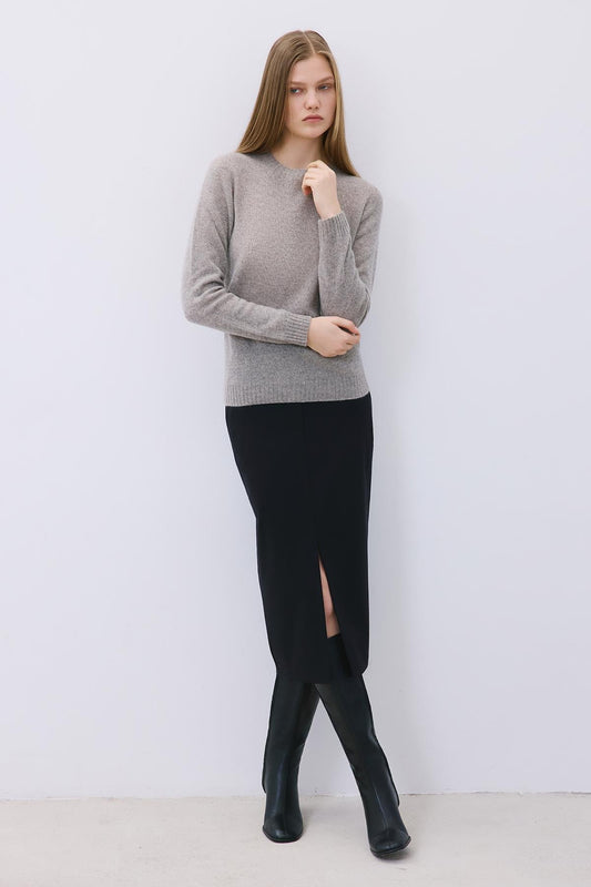 Yırtmaç Detaylı Yün Dokulu Siyah Midi Etek