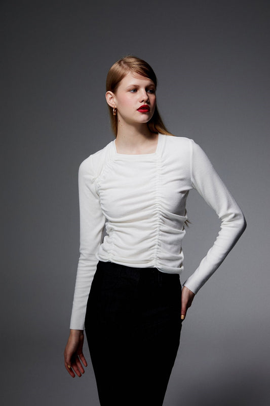 İndirimBüzgü Detaylı Ekru Crop Kazak