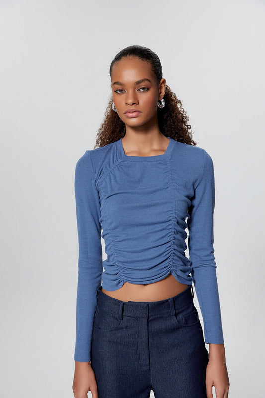 İndirimBüzgü Detaylı Indigo Crop Kazak