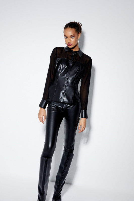 İndirimBüzgülü Desenli Siyah Crop Bluz